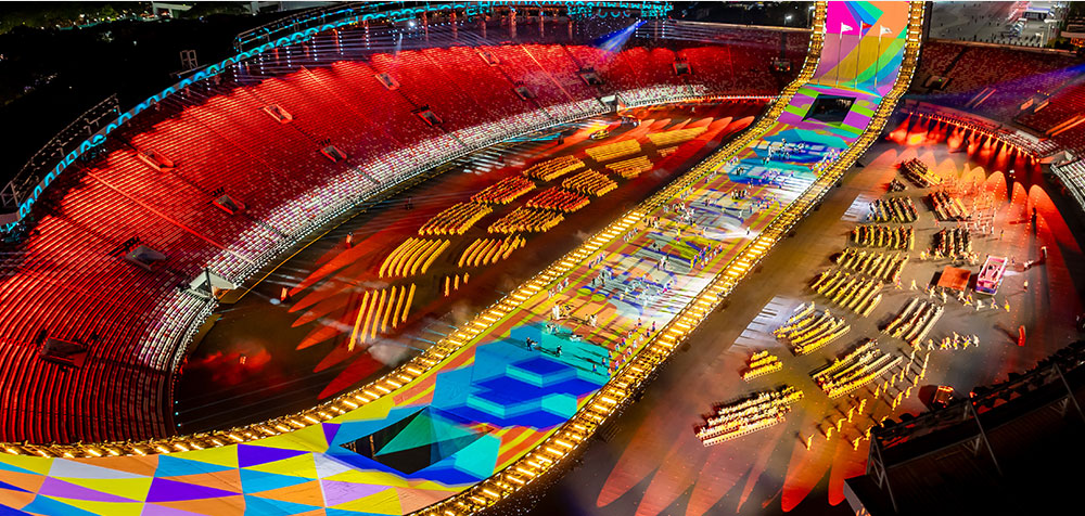 2025年11月9日晚,廣東奧林匹克體育中心華光流轉(zhuǎn)、燈火璀璨,中華人民共和國(guó)第十五屆全國(guó)運(yùn)動(dòng)會(huì)開幕式在萬眾矚目中盛大啟幕。作為首次由廣東、香港、澳門聯(lián)合承辦的體育盛會(huì),這場(chǎng)以“圓夢(mèng)未來”為主題的開幕式,秉持“國(guó)際水準(zhǔn)、中國(guó)氣派、嶺南風(fēng)韻、灣區(qū)魅力”為核心理念,通過科技與文化的深度融合,視覺敘事與空間美學(xué)的深度構(gòu)建,呈現(xiàn)了一場(chǎng)跨越時(shí)空的視聽盛宴。不僅展示了粵港澳傳統(tǒng)與現(xiàn)代交融、體育與藝術(shù)共生的繁榮圖景,更是一曲三地同心的盛大交響。